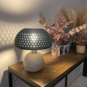 Inspirée par la forme organique du champignon amanite, cette lampe est une pièce de design à part entière. Elle allie la force brute du béton à la délicatesse d’un abat-jour ajouré, imprimé en 3D, qui laisse filtrer une lumière apaisante.